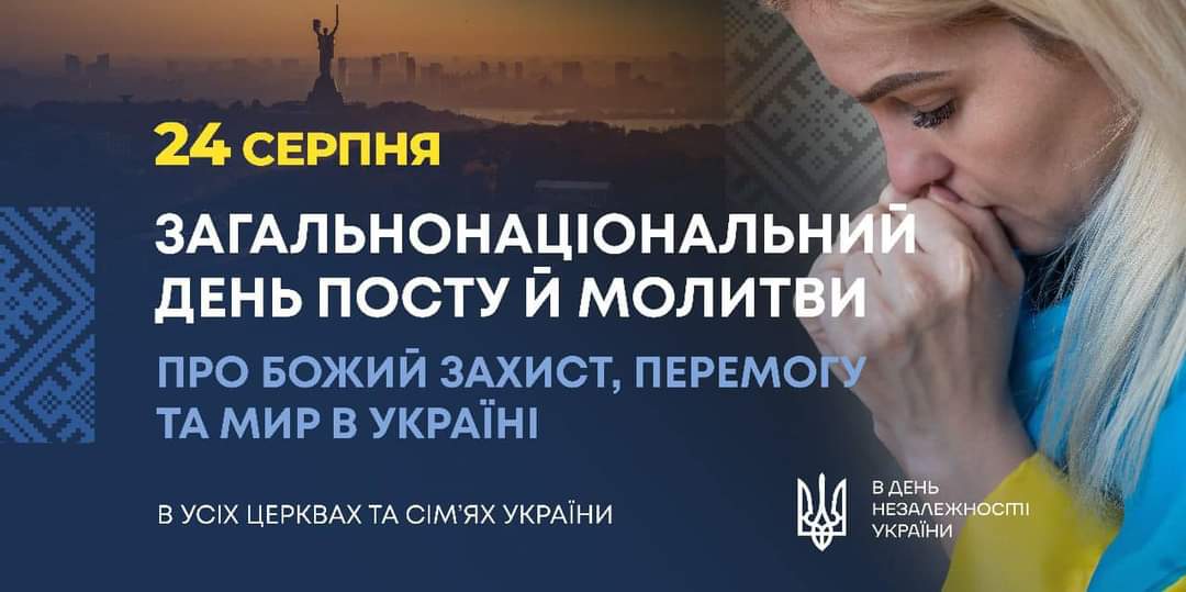 Дорогі брати та сестри, єпископи, голови обʼєднань, служителі та члени церков! Звертаємось до вас із закликом оголосити 24 серпня 2024 року в День Незалежності України піст та присвятити цей день молитві за перемогу та мир в Україні.